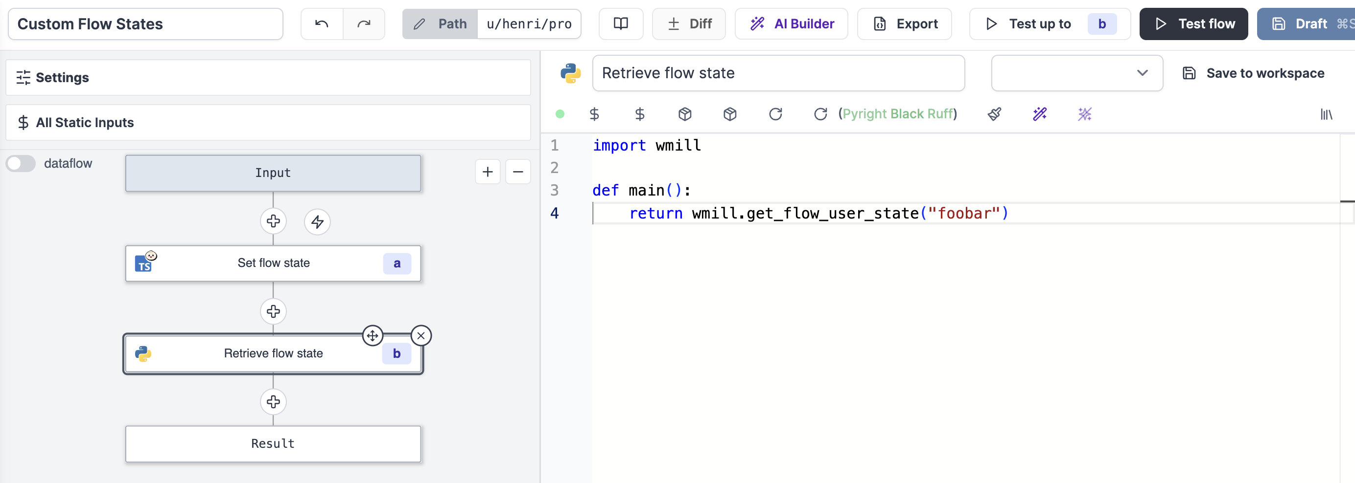 You can set and retrieve a value given a key from any step of flow and it will be available from within the flow globally.