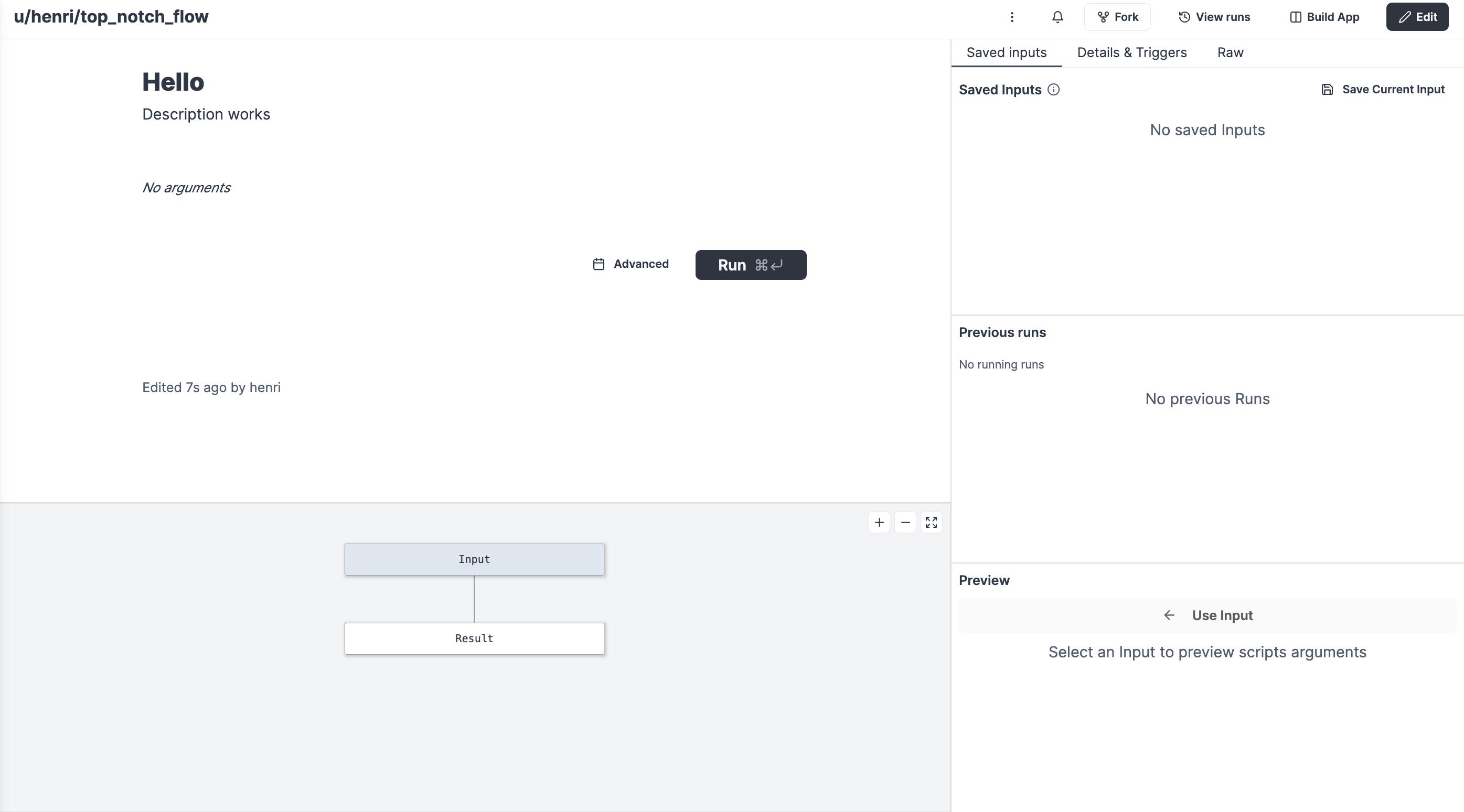 We now support GH flavored markdown for description of scripts, flows, resources.