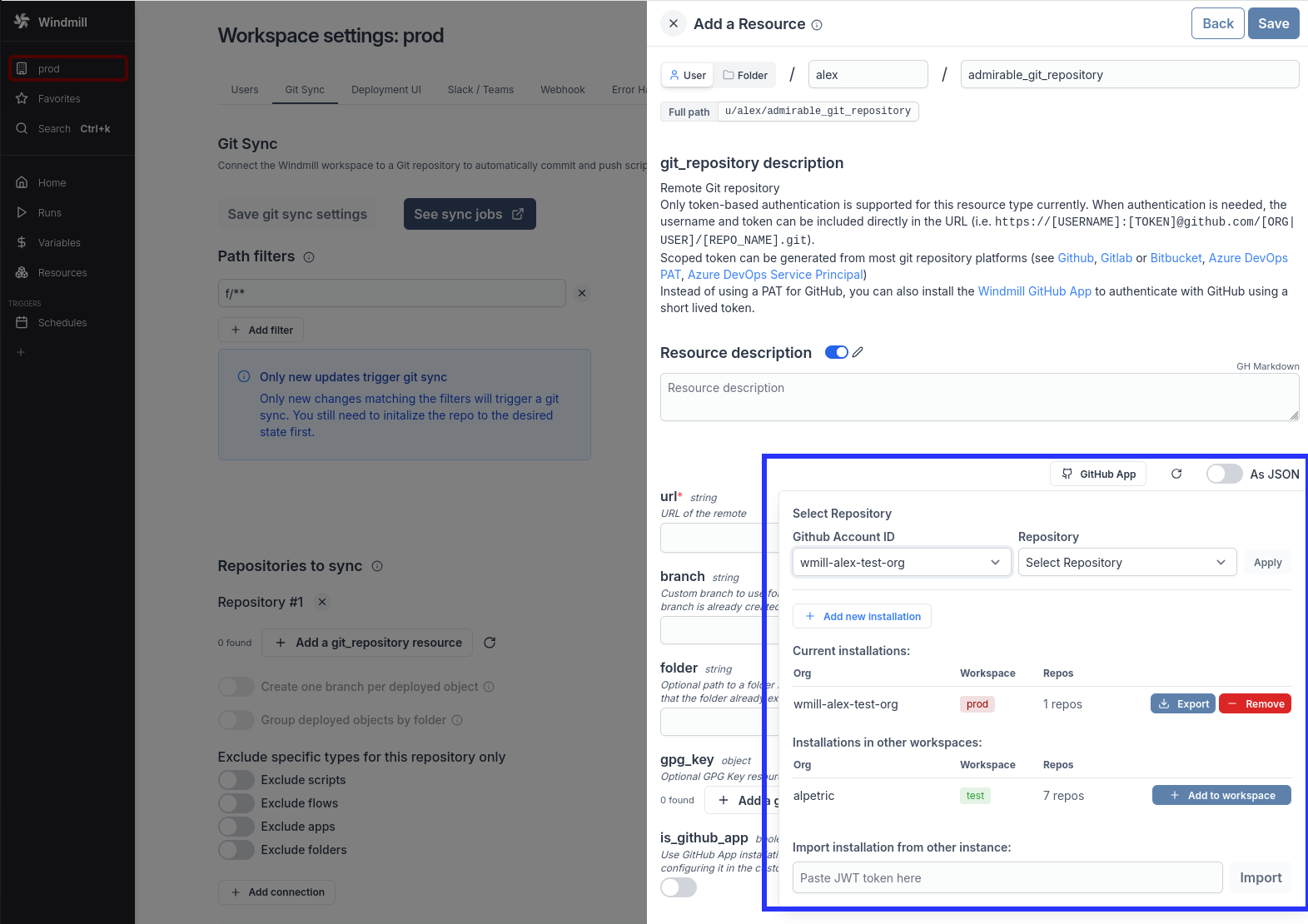 - Trigger pull/push operations directly from the workspace settings UI for seamless git sync management.