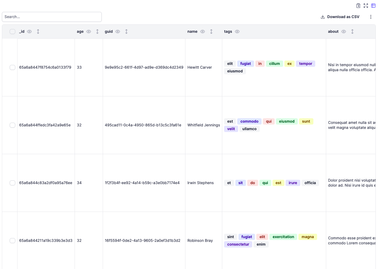AgGrid and Database studio rows now support actions, components that will be displayed at each row of the table.