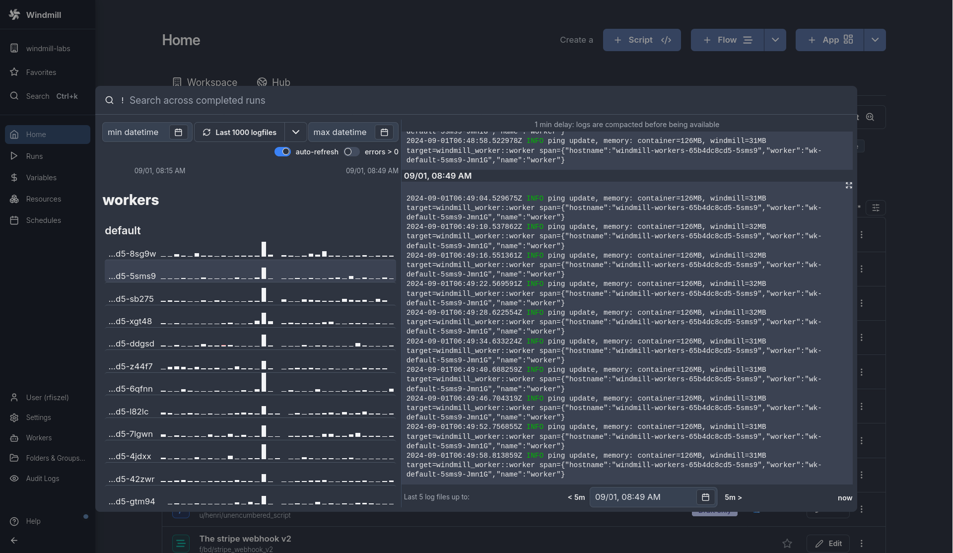 We have completely refactored the way we deal with logs in major ways and starting on 1.295.0 you should feel comfortable having extremely large logs on Windmill