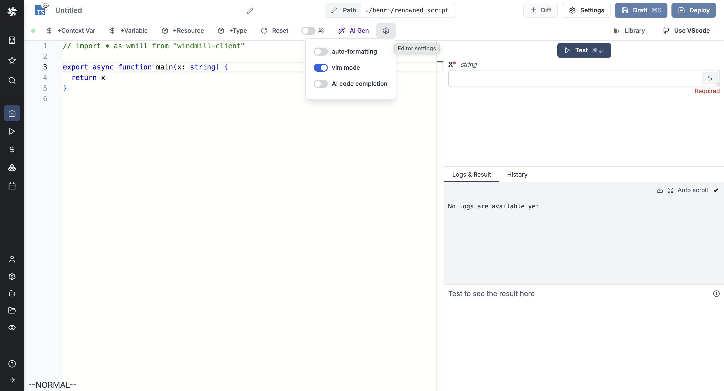 Two new improvements on the VS Code extension. It will now automatically sync its workspaces configuration with the windmill CLI ones, and has yaml syntax validation for flow.yaml files.